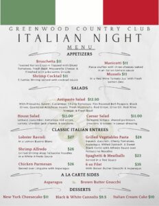 Italian Night – Greenwood Country Club Italian Night – Greenwood Country Club